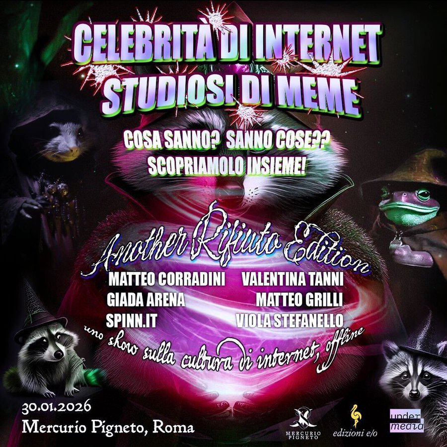 {PER LA PRIMA VOLTA A ROMA!} arriva «Celebrità di internet e studiosi di meme: cosa sanno? Sanno cose?? - Rifiuto Edition »: uno show sulla cultura di internet offline, nonché nota serata di culto per chi non crede più in nulla.