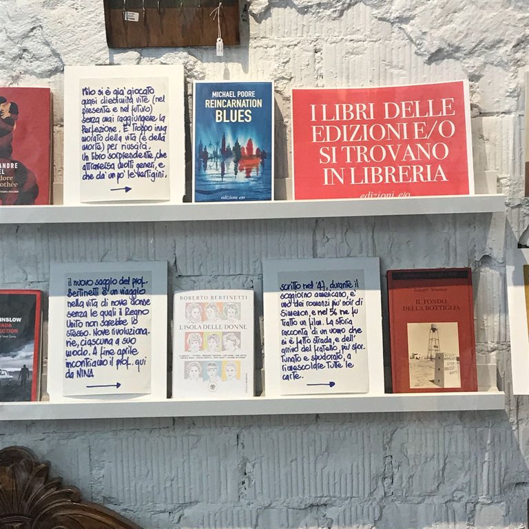 Le Edizioni E/O sono da sempre al fianco dei librai nel promuovere la lettura e aiutare ogni lettore a trovare il suo libro. Le librerie non sono un’attività commerciale come le altre: sono un vero presidio culturale, un luogo in cui si formano il senso di cittadinanza e la coscienza critica, oltre che un posto in cui si diffondono il piacere della lettura e il valore delle storie. Per questo i nostri libri si trovano e si troveranno sempre in tutte le librerie.