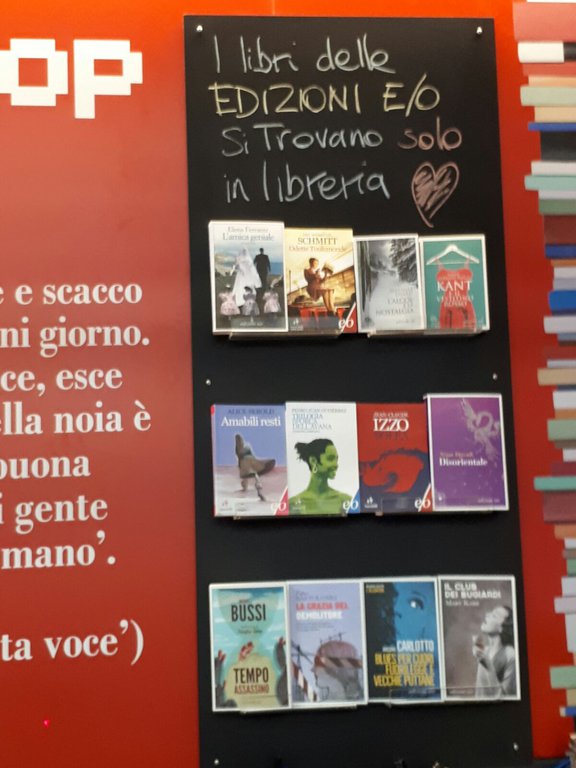 Le Edizioni E/O sono da sempre al fianco dei librai nel promuovere la lettura e aiutare ogni lettore a trovare il suo libro. Le librerie non sono un’attività commerciale come le altre: sono un vero presidio culturale, un luogo in cui si formano il senso di cittadinanza e la coscienza critica, oltre che un posto in cui si diffondono il piacere della lettura e il valore delle storie. Per questo i nostri libri si trovano e si troveranno sempre in tutte le librerie.
